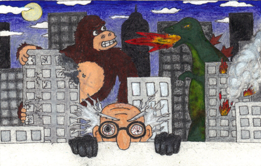 “Greetings, I am Doctor Milton Perfidious, anarchist and terror to the civilized world. You have been selected as the top of your class to create things beyond your wildest dreams and to cause chaos in a world that shuns us and calls us MAD! Today’s lesson will be in giant monster creation and the instigation of a rampage in said monster. Now if you would please turn to page 13 in your text books…”